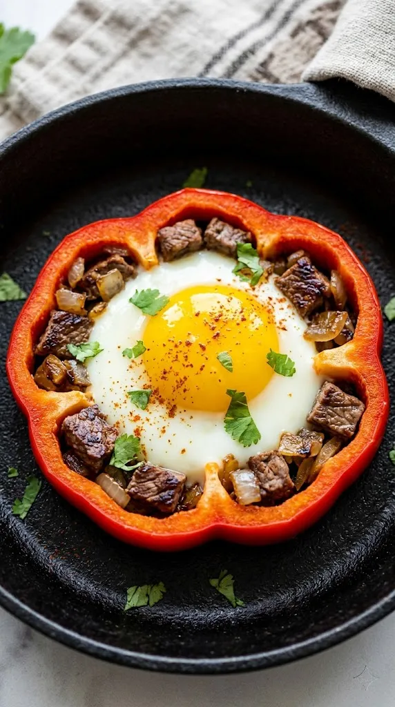It’s genius, really. You slice a bell pepper into rings, drop them in a skillet, and crack an egg right inside. It’s built-in portion control, a built-in vegetable serving, and honestly, it just looks happy on the plate.