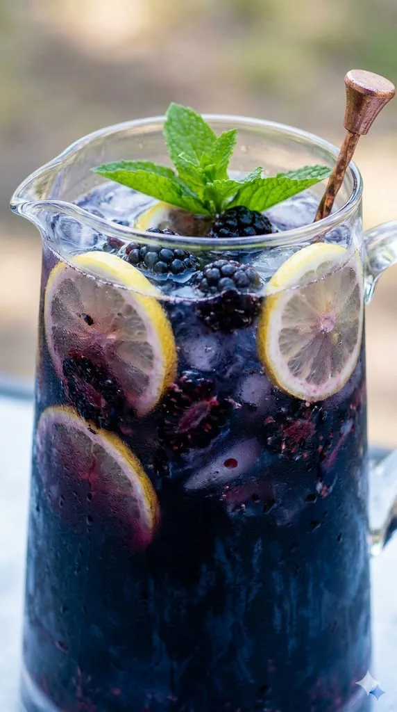 Summer punches don’t always have to be neon pink. This one goes deep, rich, and slightly moody. It’s perfect for a late-summer evening BBQ when the sun is setting and the air is getting slightly cooler.