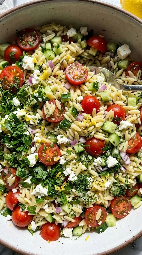 6. The Mediterranean “No-Cook” Orzo Salad