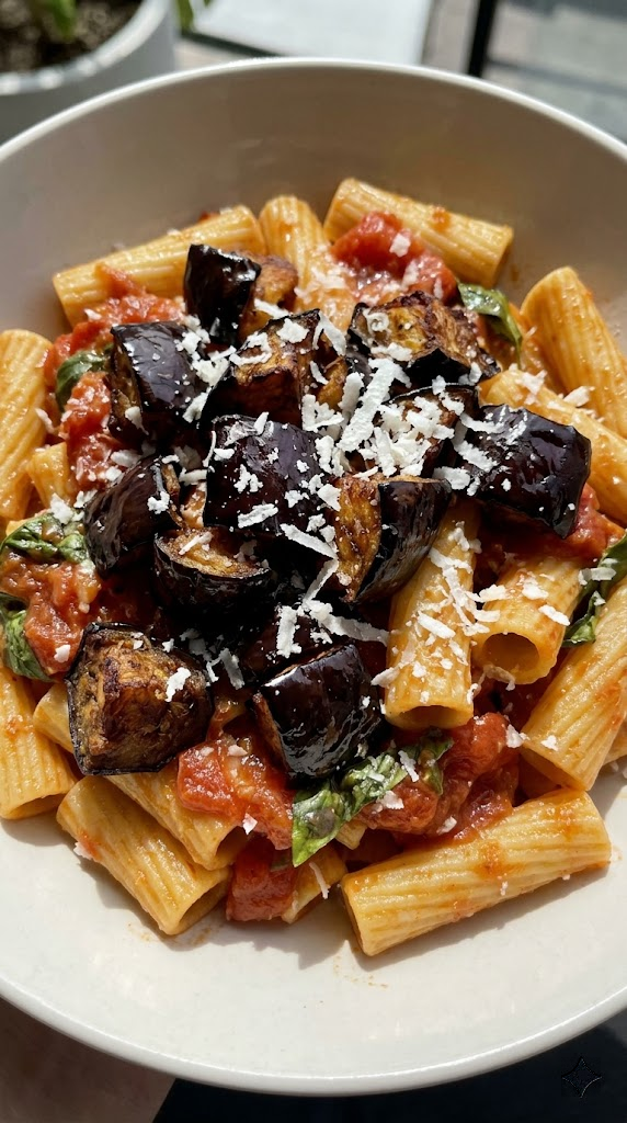 This is the classic, slightly elevated. We are treating the eggplant with the respect it deserves, cooking it until it is perfectly jammy and absolutely brimming with umami, then tossing it with a bright, robust tomato sauce that screams “summer.”