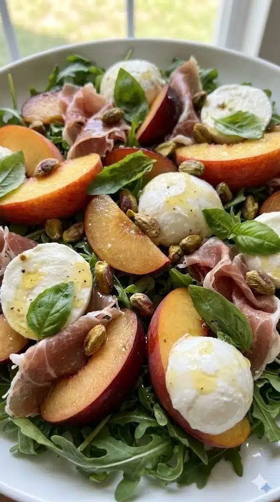 This salad feels high-end, but it’s mostly just assembly. The combination of sweet, juicy fruit against the salty prosciutto and peppery arugula is absolute perfection. It looks like a masterpiece and tastes like pure summer.
