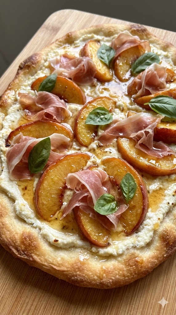 Sweet peaches, salty prosciutto, creamy ricotta, and spicy honey. It’s a flavor profile that hits every single note.