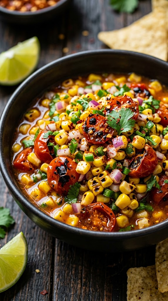 Sometimes you just need that deep, cooked-salsa flavor, and roasting is the quickest way to get there. This fiery number is for the spice lovers. By roasting the tomatoes and corn together, you get this incredibly rich, sweet-and-smoky base that is absolutely addictive.