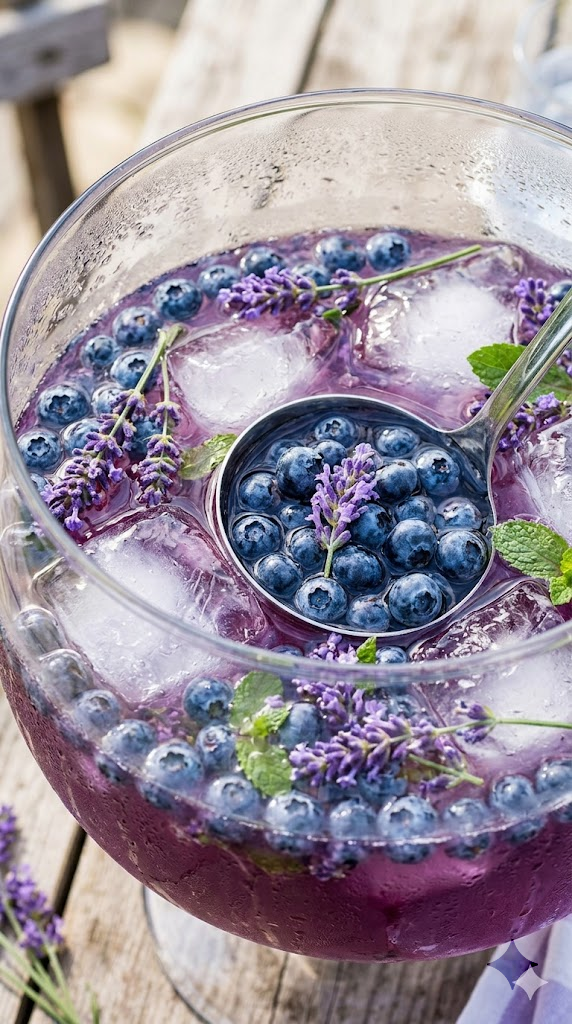 - Garnish: Fresh blueberries, lavender sprigs, and lemon wheels