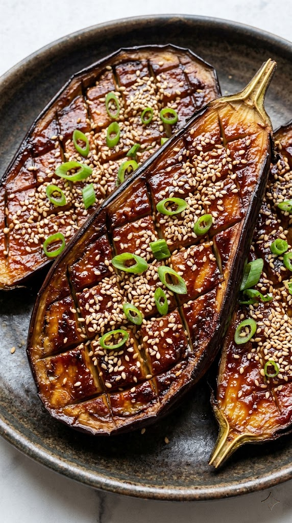 It’s an Umami bomb. The texture of Japanese eggplant is already superior (creamier, less bitter), and this glaze penetrates those cross-hatch cuts, making every bite an explosion of sweet, salty, spicy goodness.