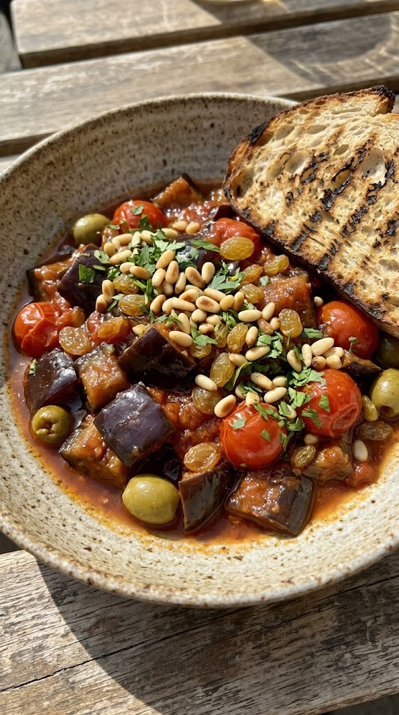 8. Summer Caponata with Pine Nuts & Raisins