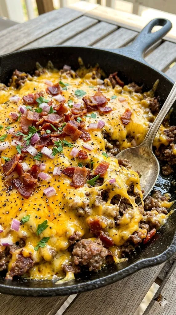 If there is one thing that represents summer more than a grilled burger, it’s a whole skillet of cheesy, bacon-loaded ground beef that requires zero grill time. This is my lazy-person’s answer to the burger crave. It’s all the savory flavor, melted cheddar, and crispy bacon, without the flipping.